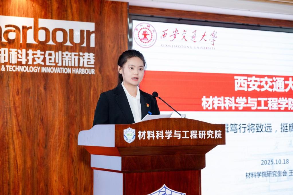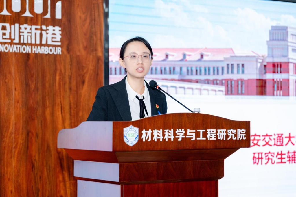 材料学院团委书记、研究生辅导员孟建芳勉励全体研究生传承西迁精神,勇担时代使命,面向同学们提出三点期望:一是要坚定理想信念,做西迁精神的新传人,将个人理想融入国家发展大局;二是要勇担时代使命,立足材料学科特色,致力于解决“卡脖子”技术难题,为实现科技自立自强贡献力量;三是要发挥桥梁作用,研究生代表要密切联系同学,积极建言献策,服务同学成长成才。